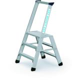 En stabil arbetspall med hopfällbart räcke, extra djupa steg och lutning som en vanlig trappa vilket gör det enkelt att kliva upp och ner. Godkänd som bra arbetsmiljöval. Kompakt format och ett handtag gör den väldigt lätt att transportera. Med ett räcke så får du bättre balans, bättre koll på var du står och det hindrar dig från att gå ner på fel sida av misstag. Den nästan helt raka baksidan gör att du kommer nära intill det du arbetar med. Räcket är fällbart så att pallen fortfarande är extremt utrymmeseffektiv vid transport. Samtliga trappsteg mäter 250 x 425 mm och har ett kraftigt dubbelriktat halkskydd. Användbar i de flesta miljöer, byggen, industrier, lager och butiker.