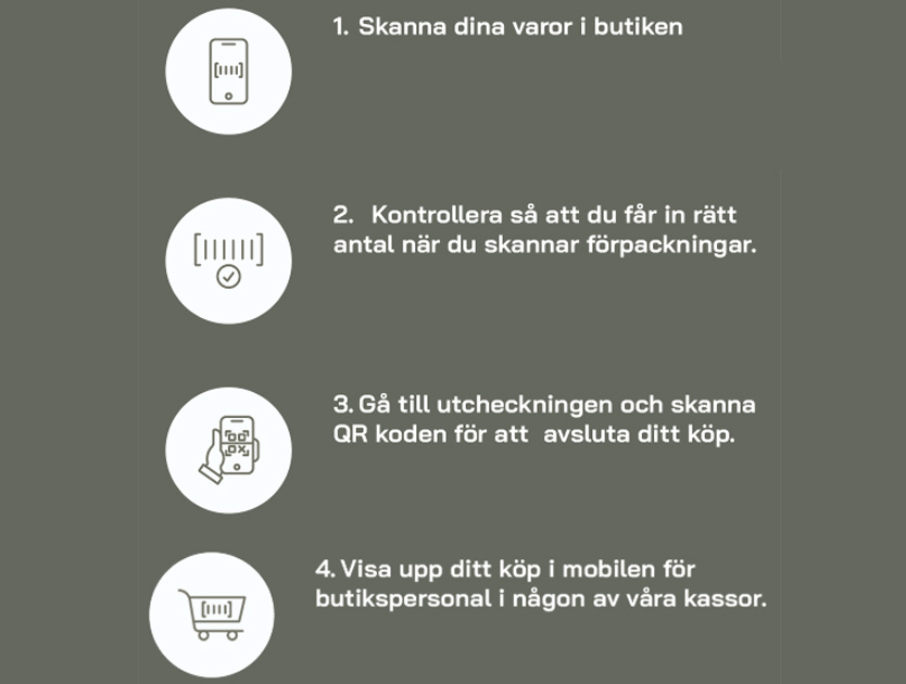 När du är redo att handla, skanna butikens QR-kod och börja plocka dina varor direkt. Enkelt, effektivt och helt utan krångel!