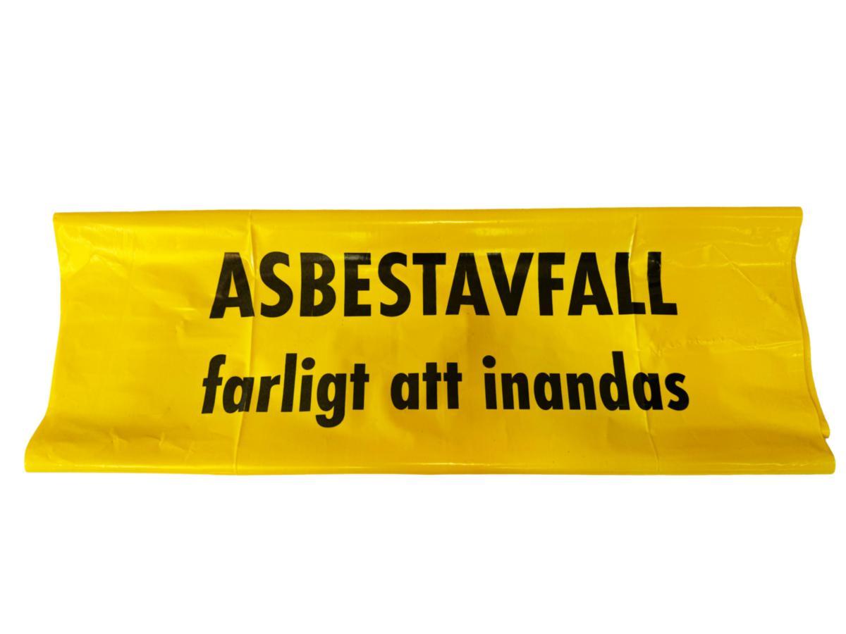 Säckar tillverkade av flera skikt 100% återinsamlad, återvunnen LDPE. Extra starka, dubbelsvetsade säckar med vit insida och gul utsida speciellt framtagna för asbestavfall. Säcken har tryck "asbestavfall farligt att inandas"
