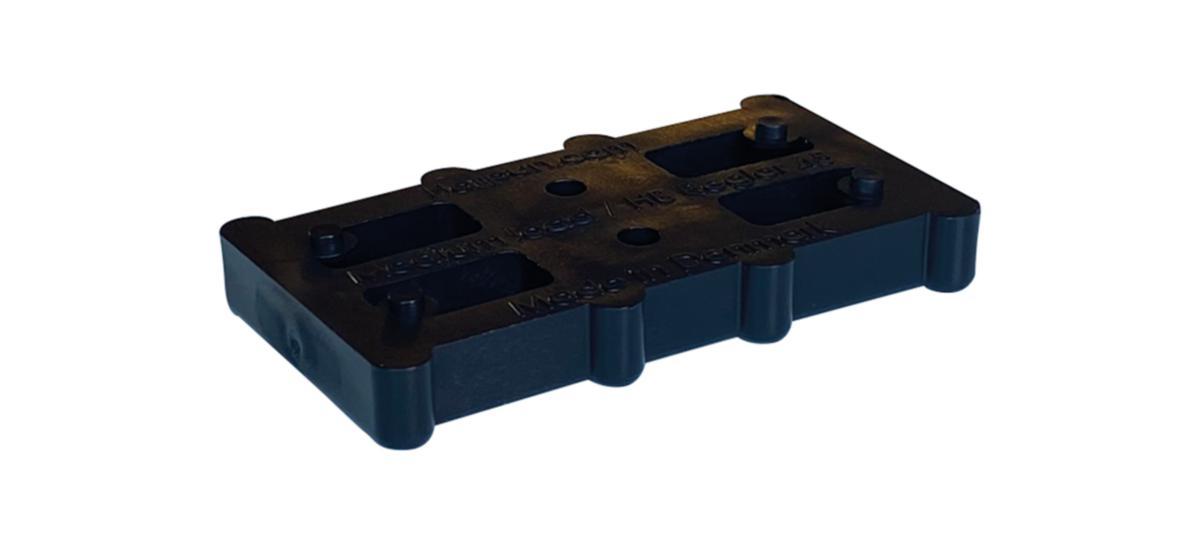 Pallbrickan används för att stödja och distansera reglar och takbjälkar med en bredd på 45 mm och rundade hörn. Brickan ger stöd på lagerytan. Den smarta designskyddade brickan ser till att monteringen går smidigt. Varje tjocklek har sin egen unika färg, vilket ger en god överblick. Det starka plastmaterialet ger en bärförmåga på 2 ton.