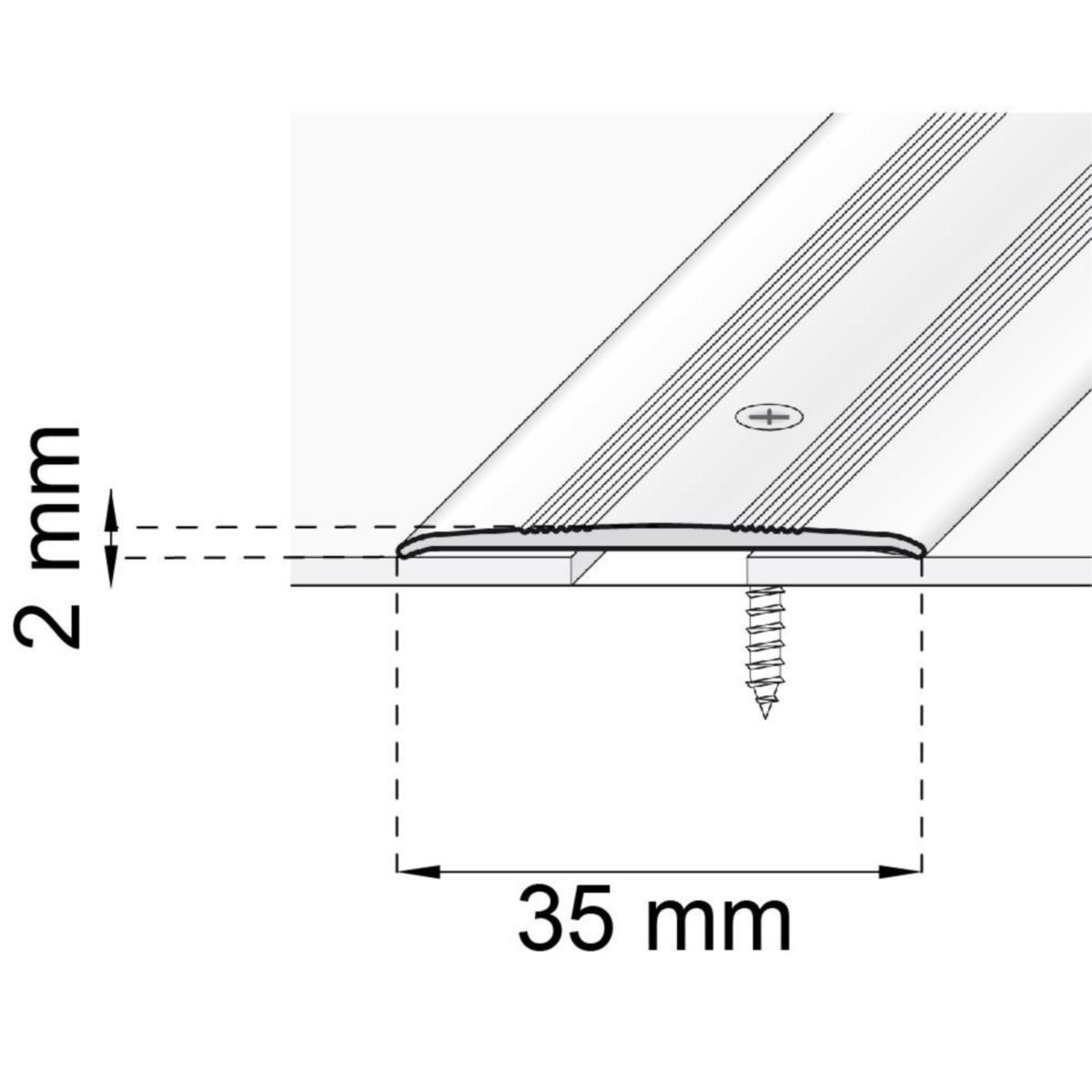 Skarvlist av aluminium för fastsättning med skruv. 2 mm förhöjning. Levereras med skruvar och pluggar.