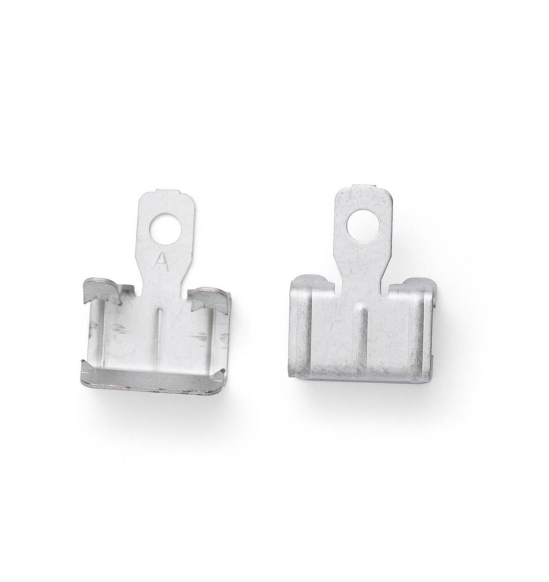 Balkklammer i stål för förläggning av kabel och rör på I-balk. Tunga med hål för najtråd eller buntband.