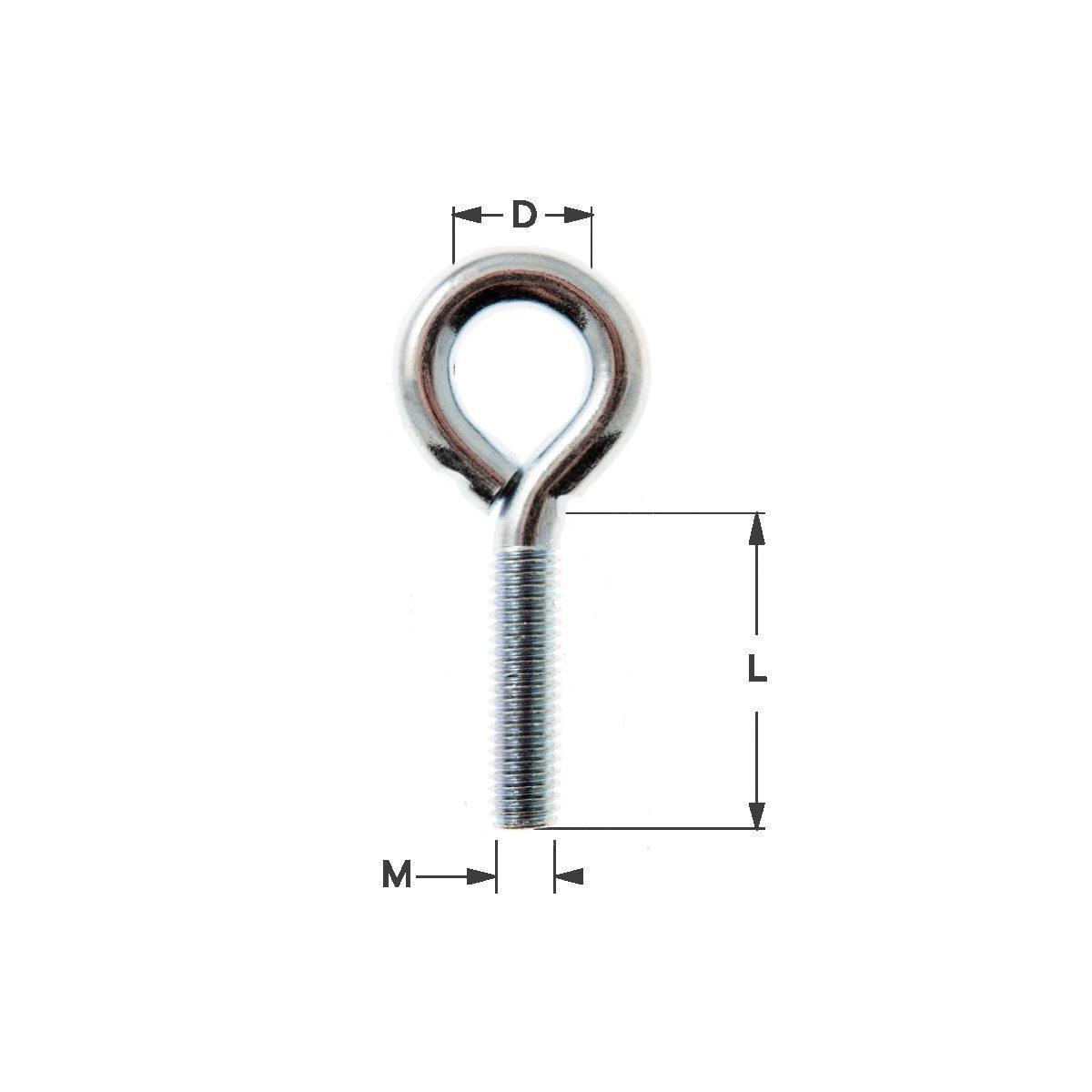 Skruvögla av stål. Maskingängad med mutter. Längd - exkl. ögla.