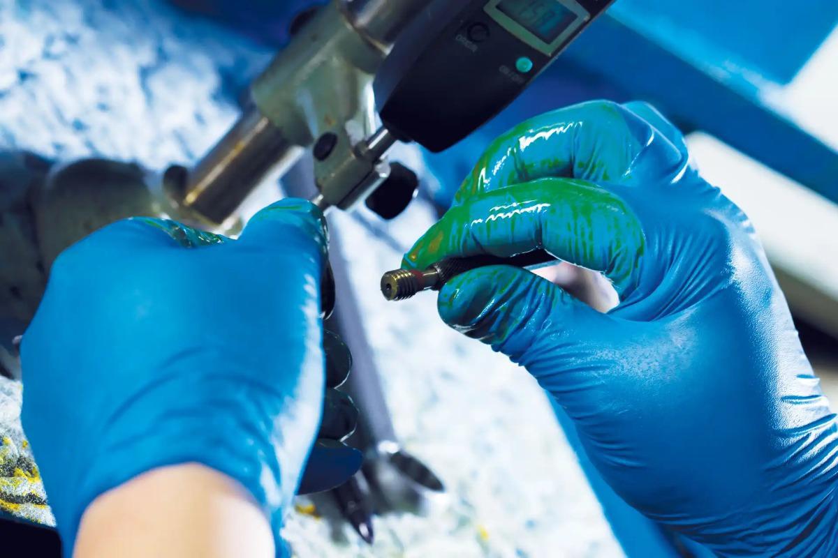 Kemikalieresistenta engångshandskar i nitril.