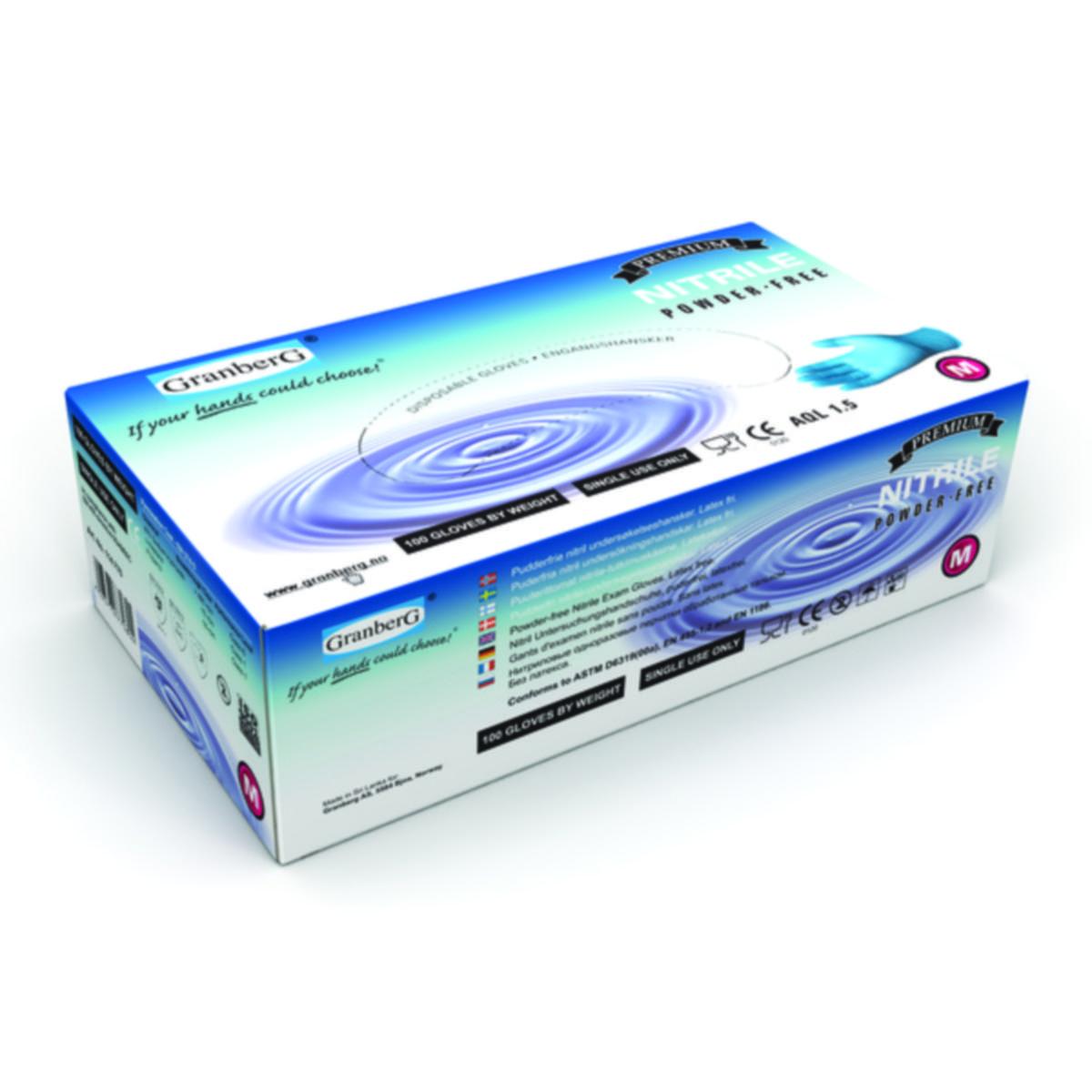 Nitrilgummi, puderfria. Färg: Blå.