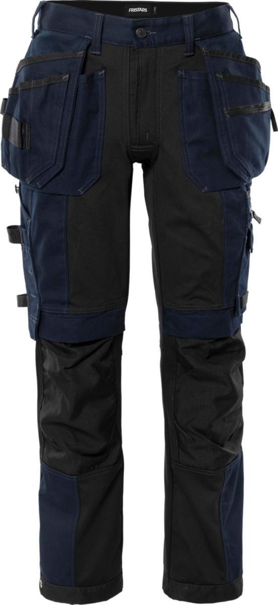 Stora 4-vägs stretchpaneler fram, bak och på ben. 2 CORDURA-förstärkta lösa hängande fickor, en med 2 fickor, en med dragkedja, en med 3 mindre fickor och verktygsöglor, 2 framfickor, 2 sidofickor, en dragkedja. 2 CORDURA-förstärkta bakfickor med lös botten. CORDURA-förstärkt tumstickficka med verktygsficka, hammarögla, pennficka, knapp och ögla för slidkniv. Stor benficka med snäppfäste, vattentät blixtlåsficka, telefonficka och extraficka med D-ring för ID-kortshållare. CORDURA-förstärkta knäfickor med öppning på utsidan ovanifrån som har höjdjustering för knäskydd. Reflekterande detaljer på bakbenen. Godkänd enligt EN 14404 tillsammans med knäskydd 124292 / OEKO-TEX-certifierad.