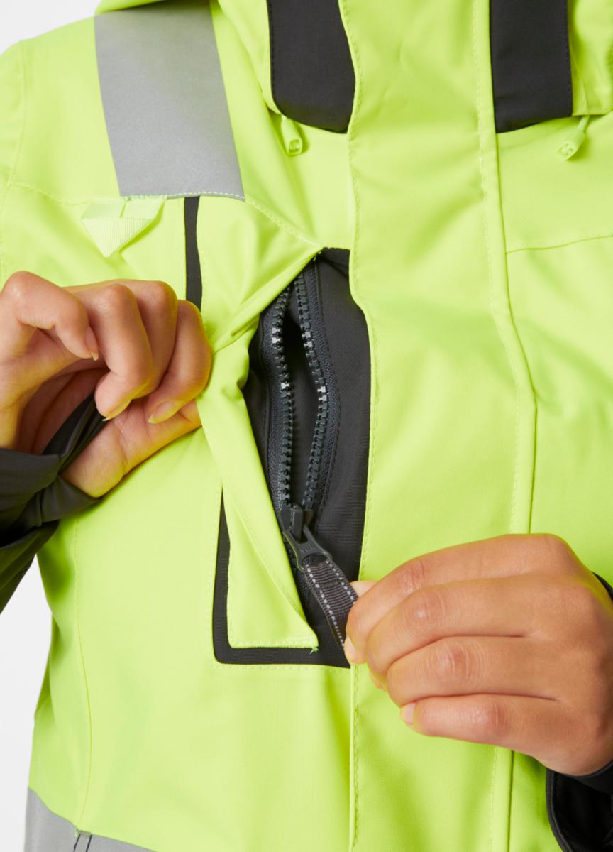 Designad och testad av kvinnor. Luna-vintervarseljackan är det perfekta valet för hantverkare som behöver både synlighet, komfort och skydd mot naturens krafter. Med Life Pocket™-teknik kommer personlig elektronik att leva längre, även under kalla dagar. Helly Tech® Performance vattentäta membran kommer den att hålla dig varm, torr och bekväm då den ser till att jackan är helt vind/vattentät. Material: Huvudsakligt material: 100 % polyester. Sekundärt material: 100 % polyamid - foder: 100 % polyamid. Isolering, bål: 80 % återvunnen polyester, 20 % polyester.