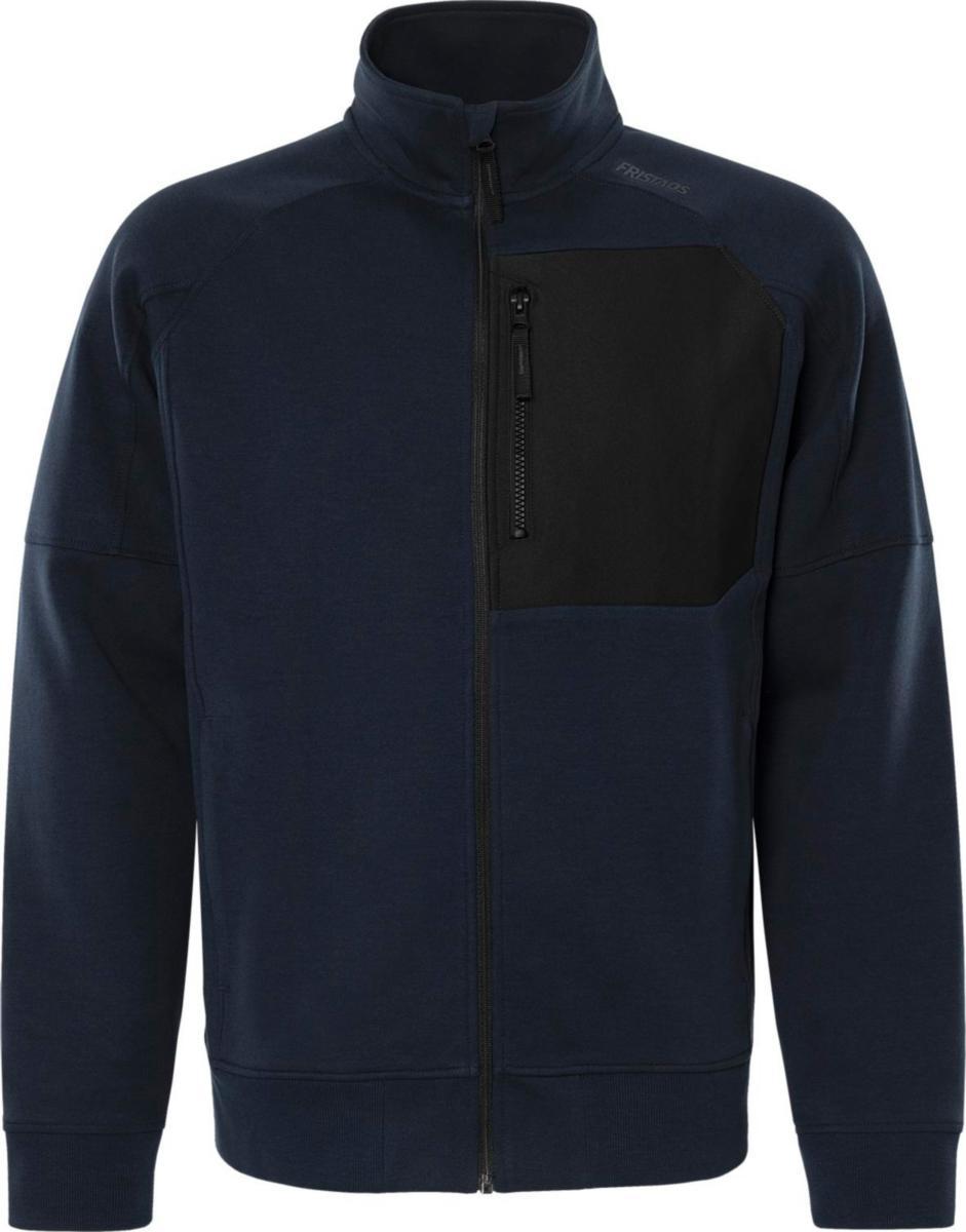 Dubbelsidigt tyg / Full längd fram dragkedja / Bröstficka med dragkedja / 2 framfickor med dragkedja / Ribbstickade manschetter och fåll / Kontrasterande sömmar / OEKO-TEX-certifierad®. Material: 60% bomull, 40% återvunnen polyester. Vikt: 325 g/m². Tvättråd: Tvätta vid en maximal temperatur på 40°C, normalt program. PFAS-fri