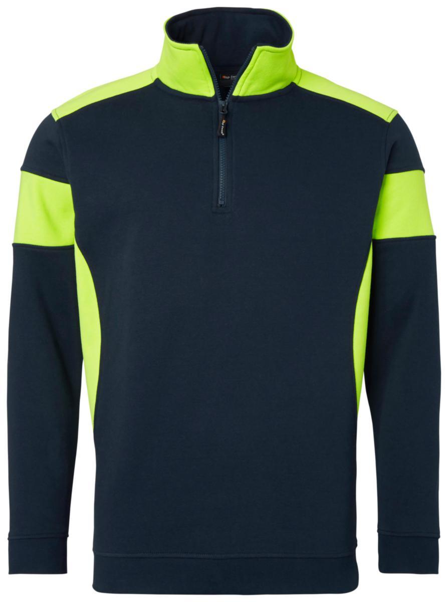 Sweatshirt med förhöjd synbarhet. Krage med kort dragkedja. Mudd i ärmslut och nederkant. Material: 80/ bomull 20% polyester 300g/m².