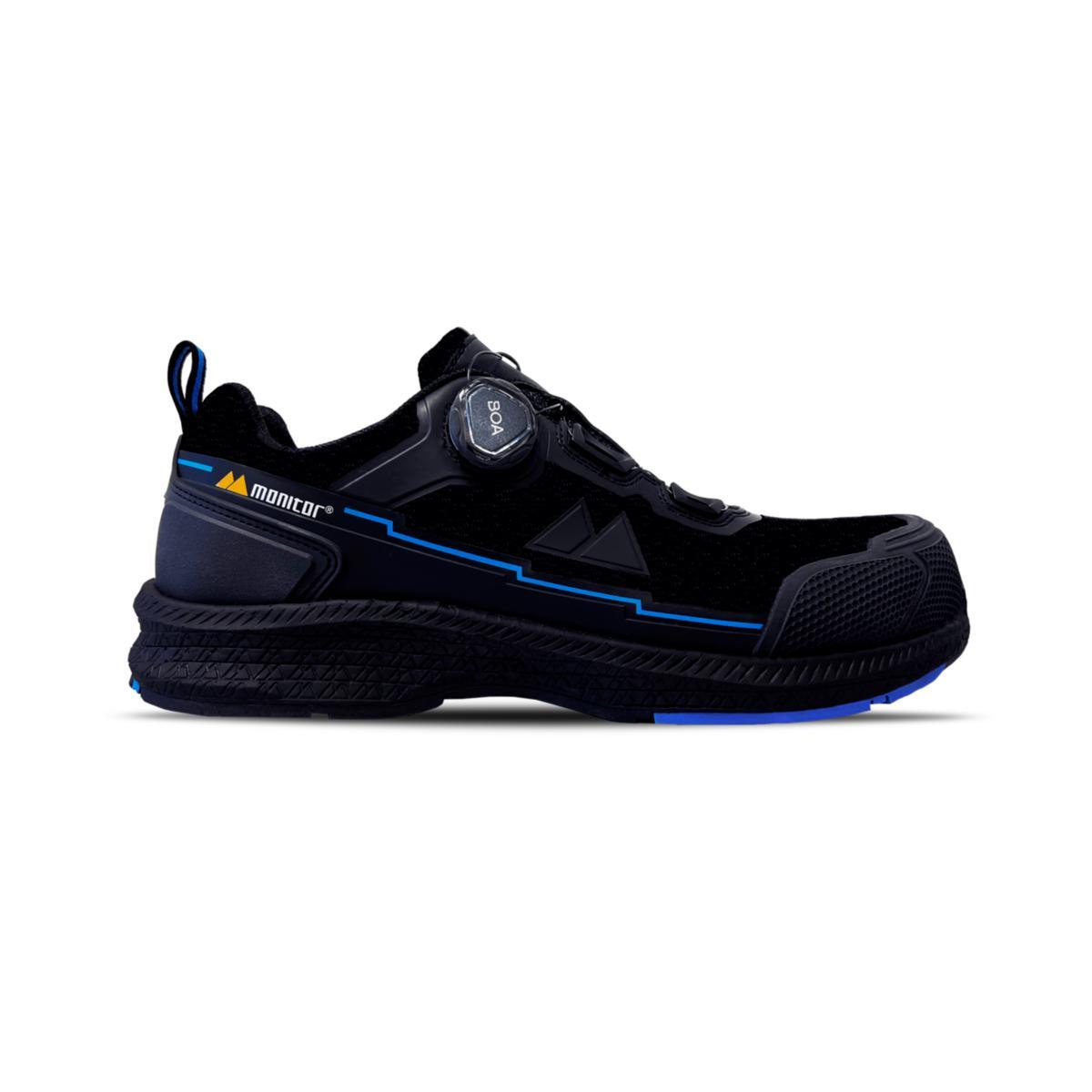 M, en ny sko i Paradox serien, bekväm och mjuk skyddssko från Monitor. Denna serie har en mellansula tillverkad i ett extremt mjukt ETPU material som har en s.k Return - Rebound på över 58%, en av marknadens absolut bäst dämpade skyddsskor. Skons yttersula är tillverkad i halksäker gummi som också har ett av de bästa SRC resultaten på marknaden! Ovandelen är i Hypertex som är ett extremt slitstarkt textil material tillverkat av Polyester och Polyuretan. Ovanpå tån har det lagts en ny kraftigare tå förstärkning i gummi, för att ytterligare förlänga livslängden på produkten. Fodret i skon är tillverkat i en fuktabsoberande textil med en ny Monitor Pro-Support Recycle innersula tillverkad i EVA med extra dämpningszoner under häl och framfot. Spikskyddet är Monitors Pantzar APT skydd som är extremt lätt och flexibelt, tåhättan är bred och tillverkad i aluminium. Modell Paradox M har också en L6 Boa technology knäppning på sidan av skon som bidrar till en mer komfortabel och mer flexibel Boa lösning. EN ISO 20345:2021 S3 FO SR ESD.