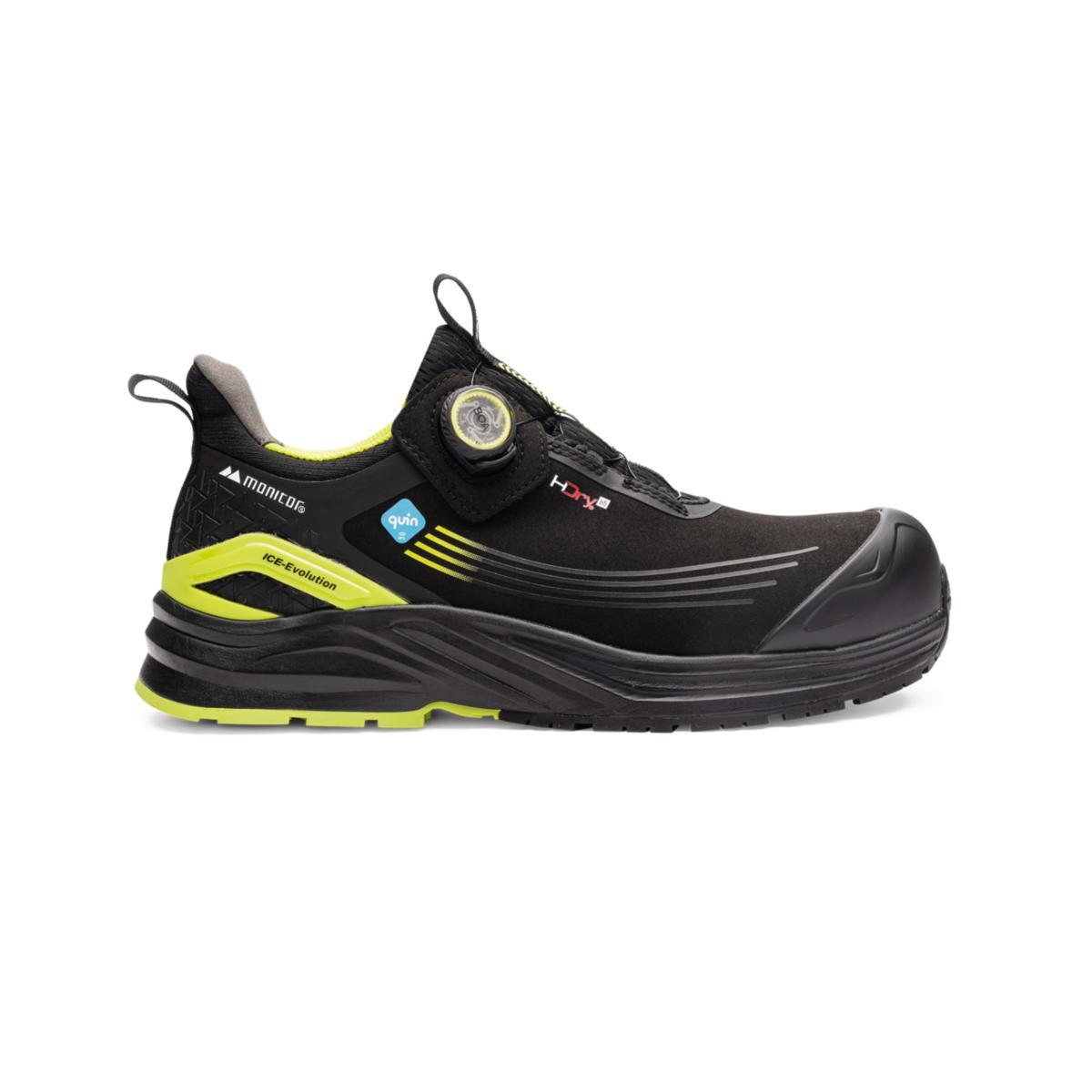 Avancerad skyddssko utrustad med ett NFC-chip från Quin och unikt M-Return-sulsystem med yttersula i gummi samt mellansula i Super Critical Foam som ger utmärkt dämpning. Hög komfort med Monitors nya Equip Fit passform som anpassas till tåhättan MNTR1. Li2 BOA® Fit System och HDry Bio-membran som gör skon helt vattentät. EN ISO 20345:2022 S7S.