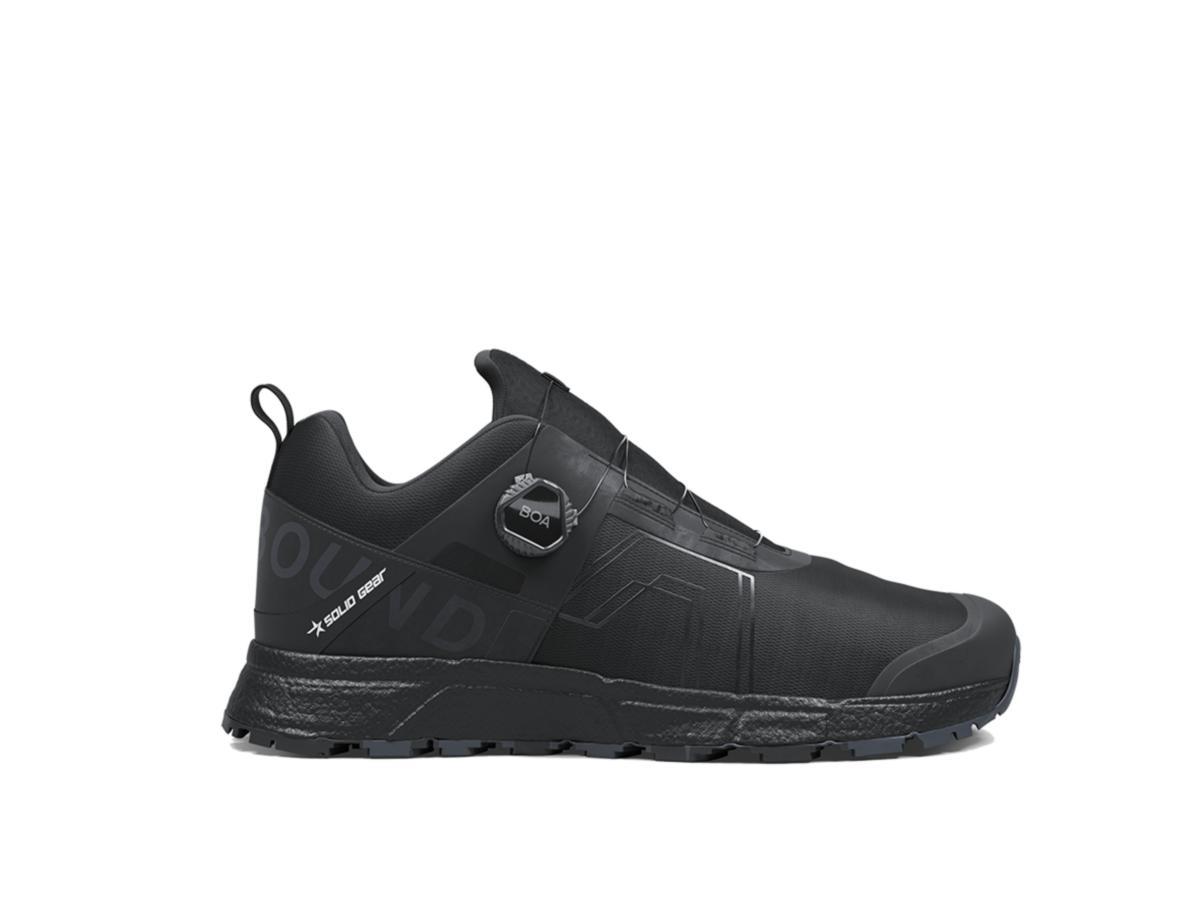 Bound Low möjliggör att röra sig lätt och smidigt både inom- och utomhus. Den revolutionerande ETPU-teknologin ger långvarig fantastisk dämpning och komfort, som minskar belastning vid användning och kommer också med fördelen att bibehålla mjukhet, vilket tillåter maximal kontaktyta med marken. Kombinationen av ETPU-mellansulan med den specialutvecklade, tillsammans med Michelin®, lätta gummisulan resulterar i extraordinärt fäste på varierande underlag. Den lätta och luftiga 3D mesh-ovandelen tillsammans med BOA® Fit System ger en god passform. Innersula från OrthoLite®, speciellt utformad för Solid Gears läst, har överlägsen dämpning och är huvudsakligen tillverkad av återvunnet material. ESD-funktion enligt EN IEC 61340-5-1:2016.
