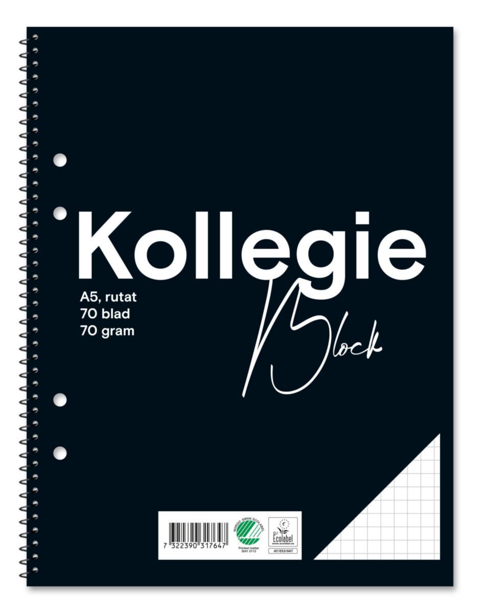 KOLLEGIEBLOCK A5 70G RUTAT 70 BLAD HÅLAT