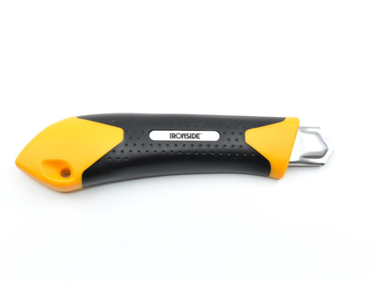 Universalkniv från Ironside med ratchet-lock-mekanism och 18 mm SK2H-blad, utformad för säker och stabil användning vid skärarbete. Tillverkad i en kombination av ABS och TPR, vilket ger god kemikaliebeständighet och hållbarhet i krävande miljöer. Knivens mått är 158x38x20 mm och den är anpassad för yrkesgrupper inom bygg, VVS och industri där tillförlitliga verktyg krävs.