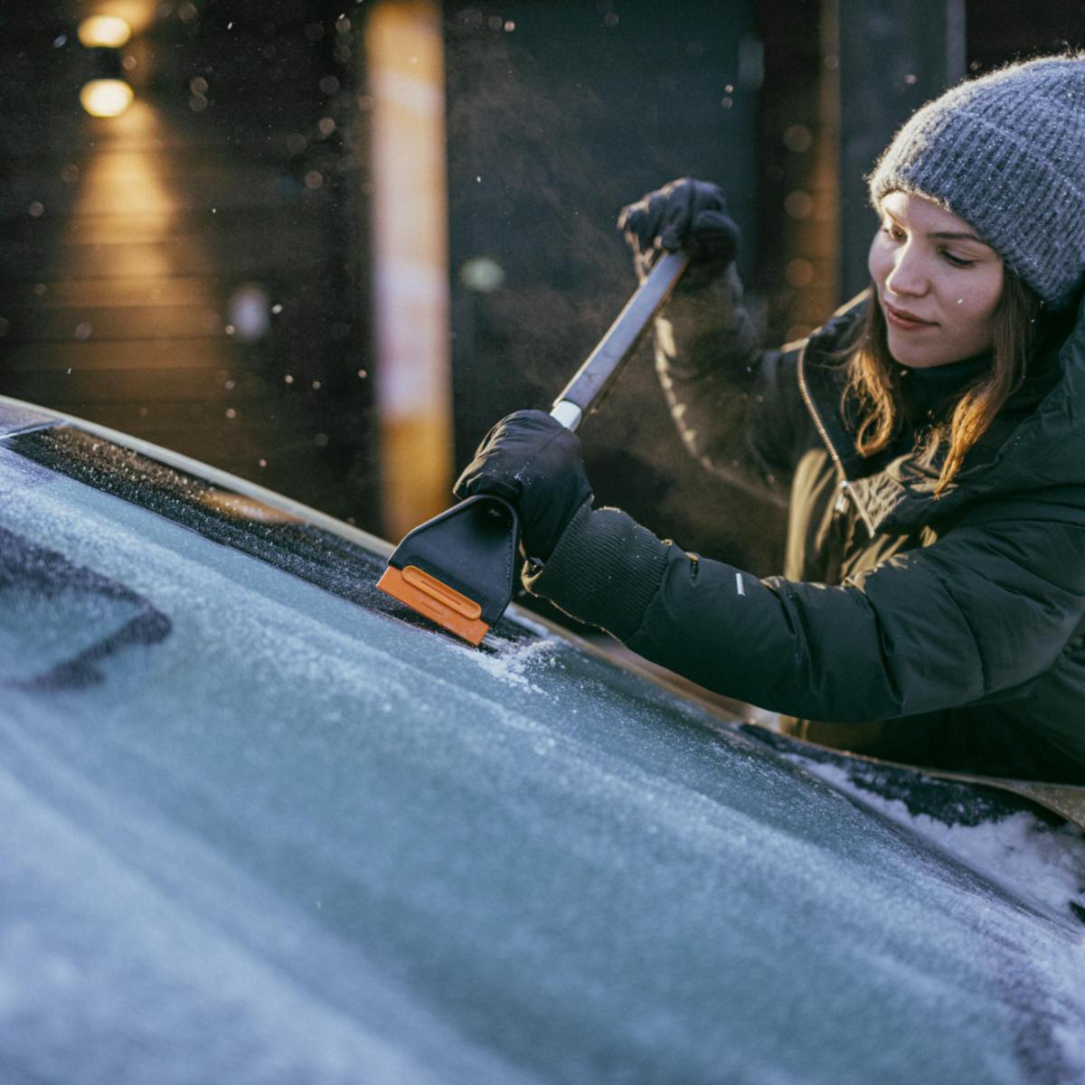 Plus Car Snöborste & Isskrapa Kort. Avlägsnar enkelt snö och is, med utbytbara slitdelar. Optimerad borste med två zoner för effektiv & skonsam snöborttagning. Duoskrapan har en hård sida för isskrapning och en mjuk sida för att avlägsna vatten, blötsnö och imma. Hållbart aluminiumskaft.