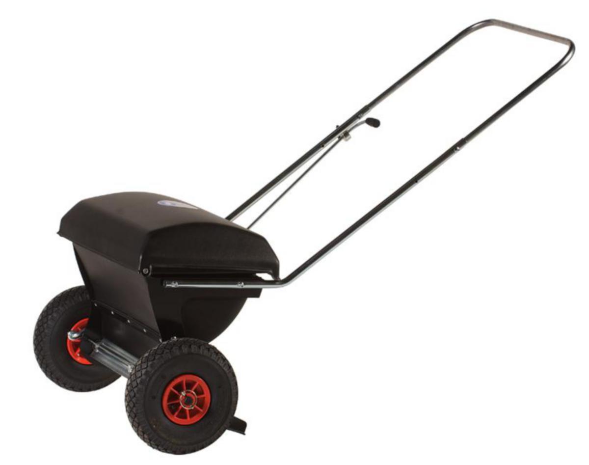 Nedmatande spridare för spridning av stenkross och sand. För torrt material 2-8 mm. Ej lämplig för salt. Locket håller alltid stenkrosset torrt även vid förvaring utomhus. Behållare på 25 liter. Arbetsbredd ca 50 cm.