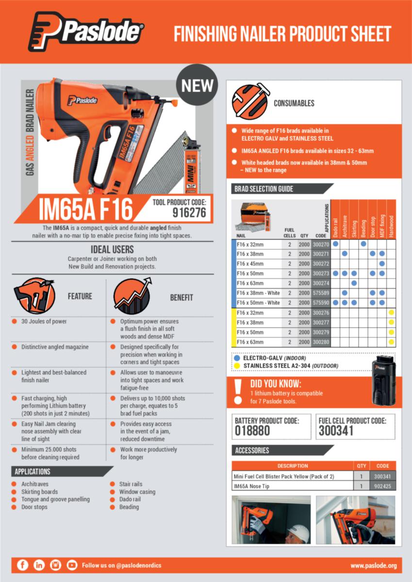 Dyckertverktyg Paslode IM65-F16 Vinklad
